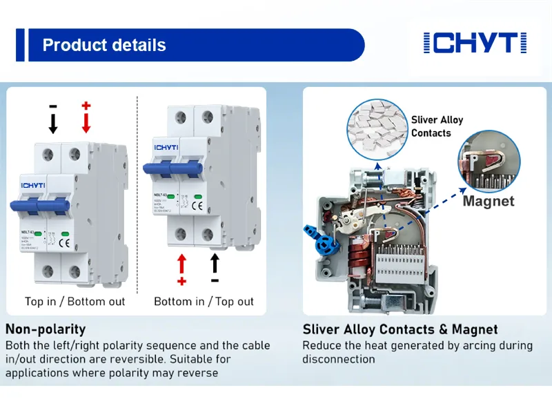 ICHYTI Çin Malı en yeni pv dc devre kesici yük ile vites değiştirme özelliğine sahip değildir, DC devre kesiciler ise aydınlatma devreleri ve ev aletleri gibi voltaj gereksinimlerinin yüksek olmadığı ve sık ayarlama yapılmasının gerekli olmadığı durumlar için uygundur.